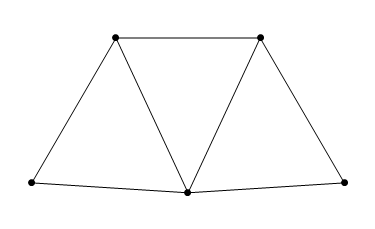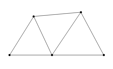 The simplest possible truss bridge that can still be called a bridge. Two deck sections, three movable joints (points) in a plane – i.e., 6 degrees of freedom and thus also 6 modes.