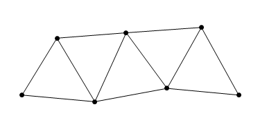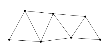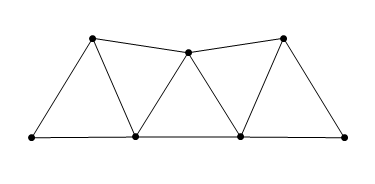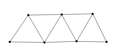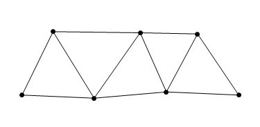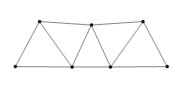 Bridge with three deck sections. Five movable joints (points) in a plane – so 10 degrees of freedom and the resulting 10 modes.